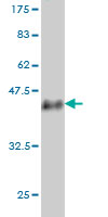 Western Blot analysis of USP33 expression in transfected 293T cell line by USP33 monoclonal antibody (M01), clone 5B5.Lane 1: USP33 transfected lysate(103.3 KDa).Lane 2: Non-transfected lysate.