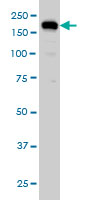 USP47 monoclonal antibody (M01), clone 5F9 Western Blot analysis of USP47 expression in HeLa ( AMM04301G )