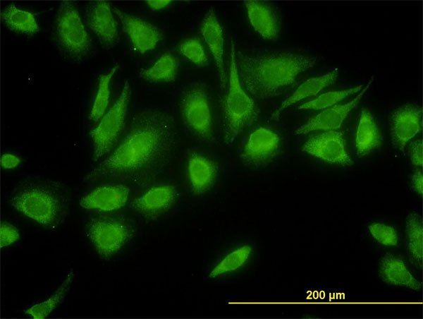 Immunofluorescence of monoclonal antibody to USP47 on HeLa cell. [antibody concentration 10 ug/ml] |