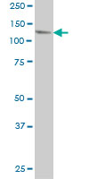 USP48 monoclonal antibody (M01), clone 3G4 Western Blot analysis of USP48 expression in HeLa ( AMM04302G )