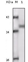 Figure 1: Western blot analysis using RSK1 mouse mAb against truncated RSK1 recombinant protein.