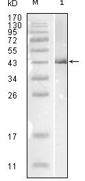 Figure 1: Western blot analysis using Influenza B virus Nucleoprotein mouse mAb against full-length recombinant Influenza B virus Nucleoprotein. |