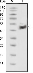Figure 1: Western blot analysis using p53 mouse mAb against HEK293 cell lysate(1).