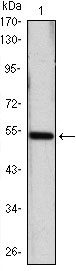 Figure 1: Western blot analysis using SHH mAb against SHH(AA: 26-161)-hIgGFc transfected HEK293 cell lysate. |