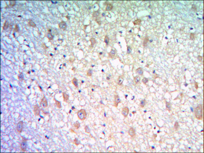 Figure 2: Immunohistochemical analysis of paraffin-embedded human brain tissues using KLHL21 mouse mAb with DAB staining. |