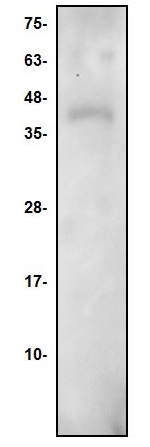 Western blot of Wnt-2 antibody. Lane 1: hr Wnt-2: 50 ng. |