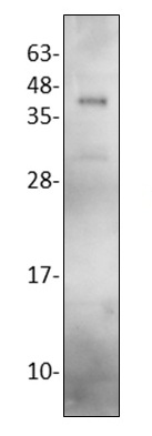 Western blot with Procathepsin K antibody. Lane1: Procathepsin K(19-329 aa) 50ng. |