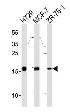 Western blot analysis in HT29, MCF-7, ZR-751 cell lysates.