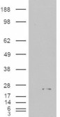 APG00040G (1 μg/ml) staining of HeLa lysate (35 μg protein in RIPA buffer). Primary incubation was 1 hour. Detected by chemiluminescence.