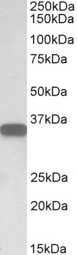APG00066G (0.05 μg/ml) staining of Human Lymph Node lysate (35 μg protein in RIPA buffer). Primary incubation was 1 hour. Detected by chemiluminescence. |
