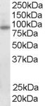 APG00134G staining (0.1 μg/ml) of Human Brain lysate (RIPA buffer, 35 μg total protein per lane). Primary incubated for 1 hour. Detected by western blot using chemiluminescence. |
