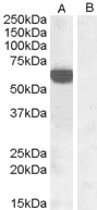 HEK293 overexpressing human IRF5 and probed with APG00173G at 1ug/ml (mock transfection in lane B). |