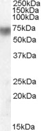 APG00185G (0.01 μg/ml) staining of Human Lung lysate (35 μg protein in RIPA buffer). Primary incubation was 1 hour. Detected by chemiluminescence. |