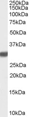 APG00187G (0.1 μg/ml) staining of Rat Brain lysate (35 μg protein in RIPA buffer). Primary incubation was 1 hour. Detected by chemiluminescence. |