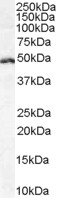 APG00188G (1 μg/ml) staining of Daudi cell lysate (35 μg protein in RIPA buffer). Primary incubation was 1 hour. Detected by chemiluminescence. |