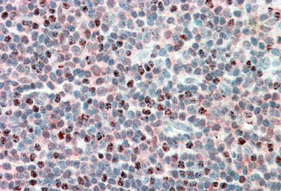 APG00197G (5 μg/ml) staining of paraffin embedded Human Tonsil. Steamed antigen retrieval with citrate buffer pH 6, AP-staining. |