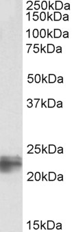 Transgelin staining of HeLa lysate (35 μg protein in RIPA buffer) by APG00324G (0.01 μg/ml). Primary incubation was 1 hour. Detected by chemiluminescence. |