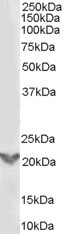 APG00329G (0.3 μg/ml) staining of A431 lysate (35 μg protein in RIPA buffer). Primary incubation was 1 hour. Detected by chemiluminescence. |