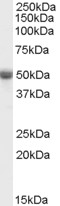 APG00345G (0.1 μg/ml) staining of human ovary lysate (35 μg protein in RIPA buffer). Primary incubation was 1 hour. Detected by chemiluminescence.