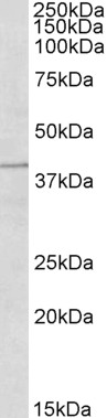 APG00350G (2 μg/ml) staining of Human Placenta lysate (35 μg protein in RIPA buffer). Primary incubation was 1 hour. Detected by chemiluminescence. |