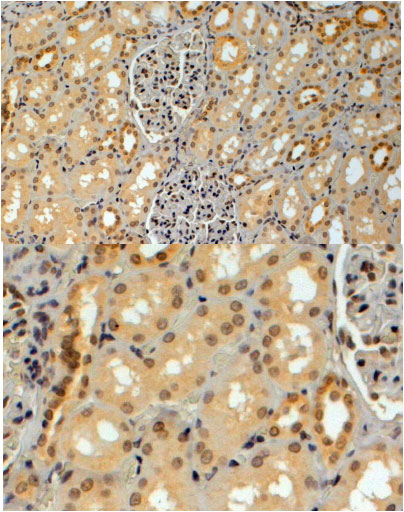 APG00400G (4 μg/ml) staining of paraffin embedded Human Kidney. Steamed antigen retrieval with citrate buffer pH 6, HRP-staining. |
