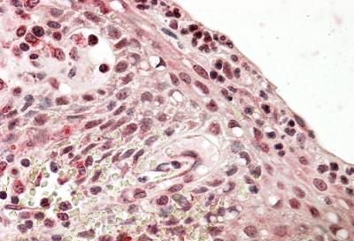 APG00624G (3.8 μg/ml) staining of paraffin embedded Human Tonsil. Steamed antigen retrieval with citrate buffer pH 6, AP-staining. |