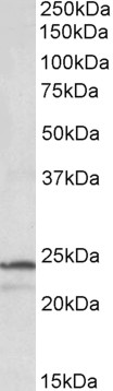 APG00696G (1 μg/ml) staining of K562 lysate (35 μg protein in RIPA buffer). Primary incubation was 1 hour. Detected by chemiluminescence. |