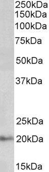 APG00715G (0.03 μg/ml) staining of Human Kidney lysate (35 μg protein in RIPA buffer). Primary incubation was 1 hour. Detected by chemiluminescence.