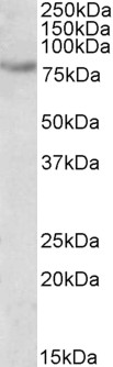 APG00727G (0.5 μg/ml) staining of fetal Mouse kidney lysate (35 μg protein in RIPA buffer). Primary incubation was 1 hour. Detected by chemiluminescence. |