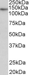 APG00793G (0.5 μg/ml) staining of Human Skeletal Muscle lysate (35 μg protein in RIPA buffer). Primary incubation was 1 hour. Detected by chemiluminescence. |