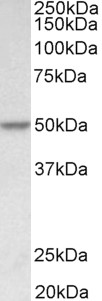 APG00829G (0.1 μg/ml) staining of HeLa lysate (35 μg protein in RIPA buffer). Primary incubation was 1 hour. Detected by chemiluminescence. |