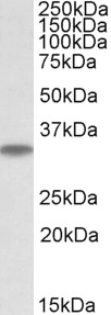 APG00641G (0.05 μg/ml) staining of Mouse Brain lysate (35 μg protein in RIPA buffer). Primary incubation was 1 hour. Detected by chemiluminescence. |