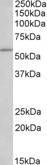 APG00767G (0.05 μg/ml) staining of Jurkat lysate (35 μg protein in RIPA buffer). Primary incubation was 1 hour. Detected by chemiluminescence. |