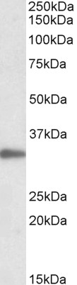 APG00836G (0.05 μg/ml) staining of Jurkat lysate (35 μg protein in RIPA buffer). Primary incubation was 1 hour. Detected by chemiluminescence.