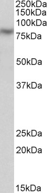 APG00886G (0.3 μg/ml) staining of Human Kidney lysate (35 μg protein in RIPA buffer). Primary incubation was 1 hour. Detected by chemiluminescence. |