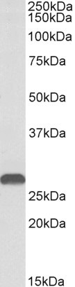 APG00913G (1 μg/ml) staining of Mouse Kidney lysate (35 μg protein in RIPA buffer). Primary incubation was 1 hour. Detected by chemiluminescence. |