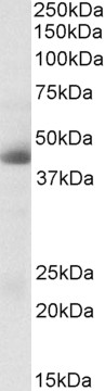 APG00924G (0.3 μg/ml) staining of Human Kidney lysate (35 μg protein in RIPA buffer). Primary incubation was 1 hour. Detected by chemiluminescence.