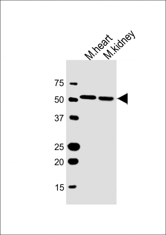 All lanes : Anti-Gpi Antibody (C-term) at 1:1000 dilution Lane 1: mouse heart lysate Lane 2: mouse kidney lysate Lysates/proteins at 20 μg per lane. Secondary Goat Anti-Rabbit IgG, (H+L), Peroxidase conjugated at 1/10000 dilution. Predicted band size : 63 kDa Blocking/Dilution buffer: 5% NFDM/TBST. |