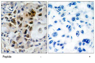 Immunohistochemical analysis of paraffin-embeddedhuman lung carcinoma tissue, using AFX Antibody (S197) (APR00461G). |