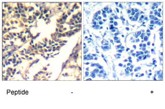 Immunohistochemical analysis of paraffin-embedded human breast carcinoma tissue using C-Cbl Antibody (Y770) (APR00465G). |