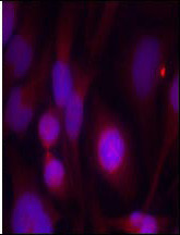 Immunofluorescence staining of methanol-fixed HeLa cells using HDAC2 Antibody (S394) (APR00479G,Red). |