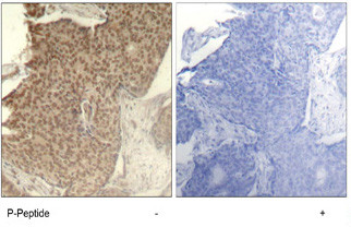 Immunohistochemical analysis of paraffin-embedded human breast carcinoma tissue using Phospho-HDAC2-S394 Antibody (APR00480G).