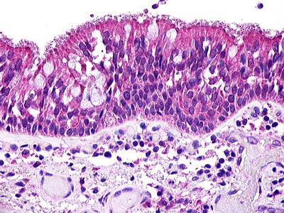 Anti-C3AR / C3a Receptor antibody IHC of human lung, respiratory epithelium. |