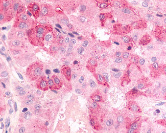 Anti-BDKRB2/Bradykinin B2 Receptor antibody IHC of human Lung, Adenocarcinoma.