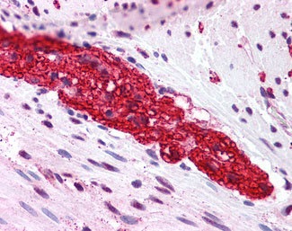 Human GRM5 / MGLUR5. BLAST analysis of the peptide immunogen showed no homology with other human proteins.