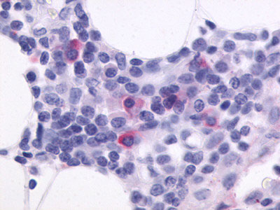 Human CXCR5. BLAST analysis of the peptide immunogen showed no homology with other human proteins, except NAAA (67%).