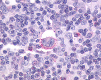 Anti-CXCR5 antibody IHC of human Lymph Node, Hodgkins Lymphoma. |