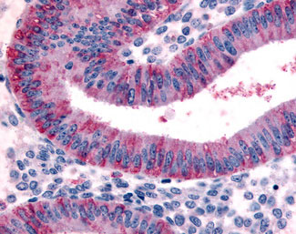 Anti-DKK1 antibody APR02001G IHC of human uterus, endometrium. |