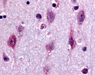 Anti-MAPK3 / ERK1 antibody APR02005G IHC of human neurons and glia. |