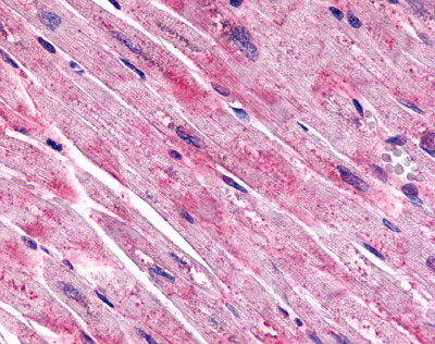 Anti-FZD7 / Frizzled 7 antibody APR02040G IHC of human heart, cardiac myocytes.